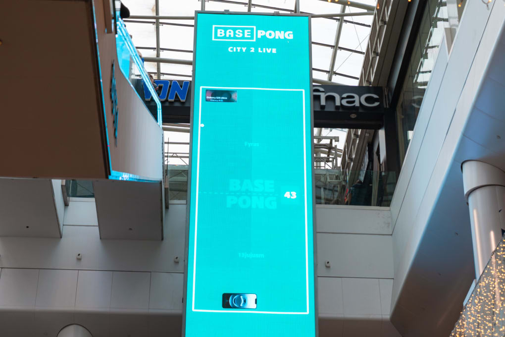 In a world overflowing with notifications and distractions, BASE and AdSomeNoise brought a moment of pure, simple fun back to life with BASE Pong. Inspired by the iconic game Pong, the activation allowed players to compete live online against friends or strangers, earning points for every ball they hit. Weekly top scorers won prizes like Samsung Galaxy smartphones, smartwatches, and House of Marley Bluetooth speakers. At its peak, the battles went beyond the screen: in City2 shopping center, players faced each other on a massive 22-meter DOOH display. With clever social mechanics like power-ups for inviting friends, BASE Pong combined nostalgia, interactivity, and community in one memorable brand experience.