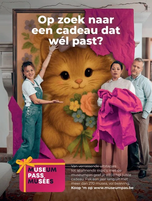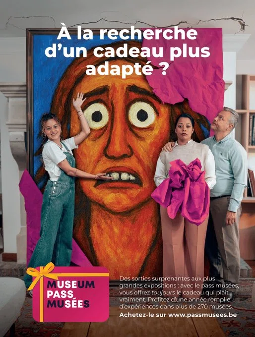 We repositioned museumPASSmusées as the gift that avoids all wrong gifts. The creative concept leaned into awkward gifting moments, exaggerating the discomfort of giving the wrong present. From a massive Rubens painting scratching the ceiling to other cringe-worthy surprises, the campaign humorously showed what not to give, before presenting the museum pass as a year full of discovery and experiences.